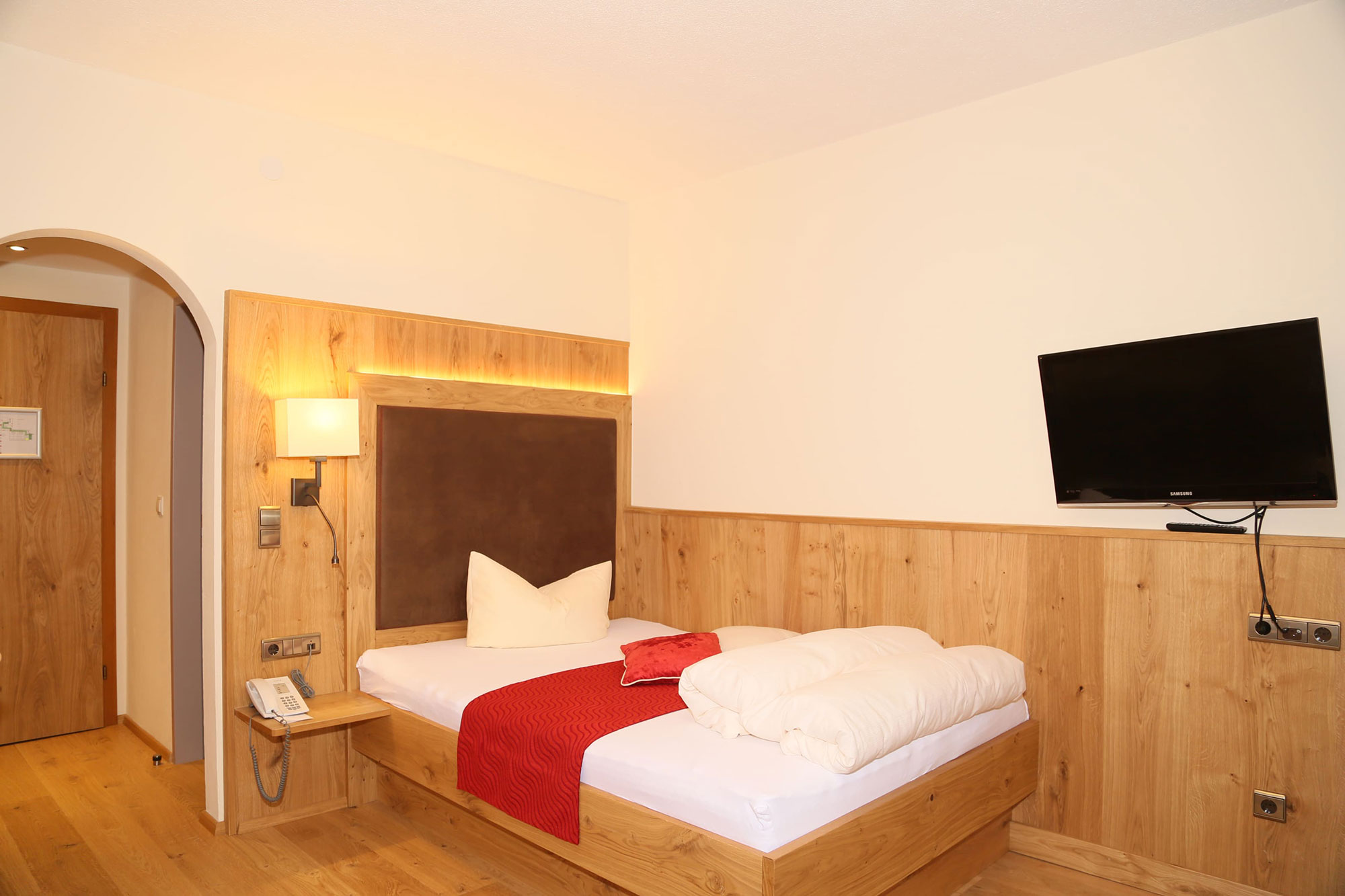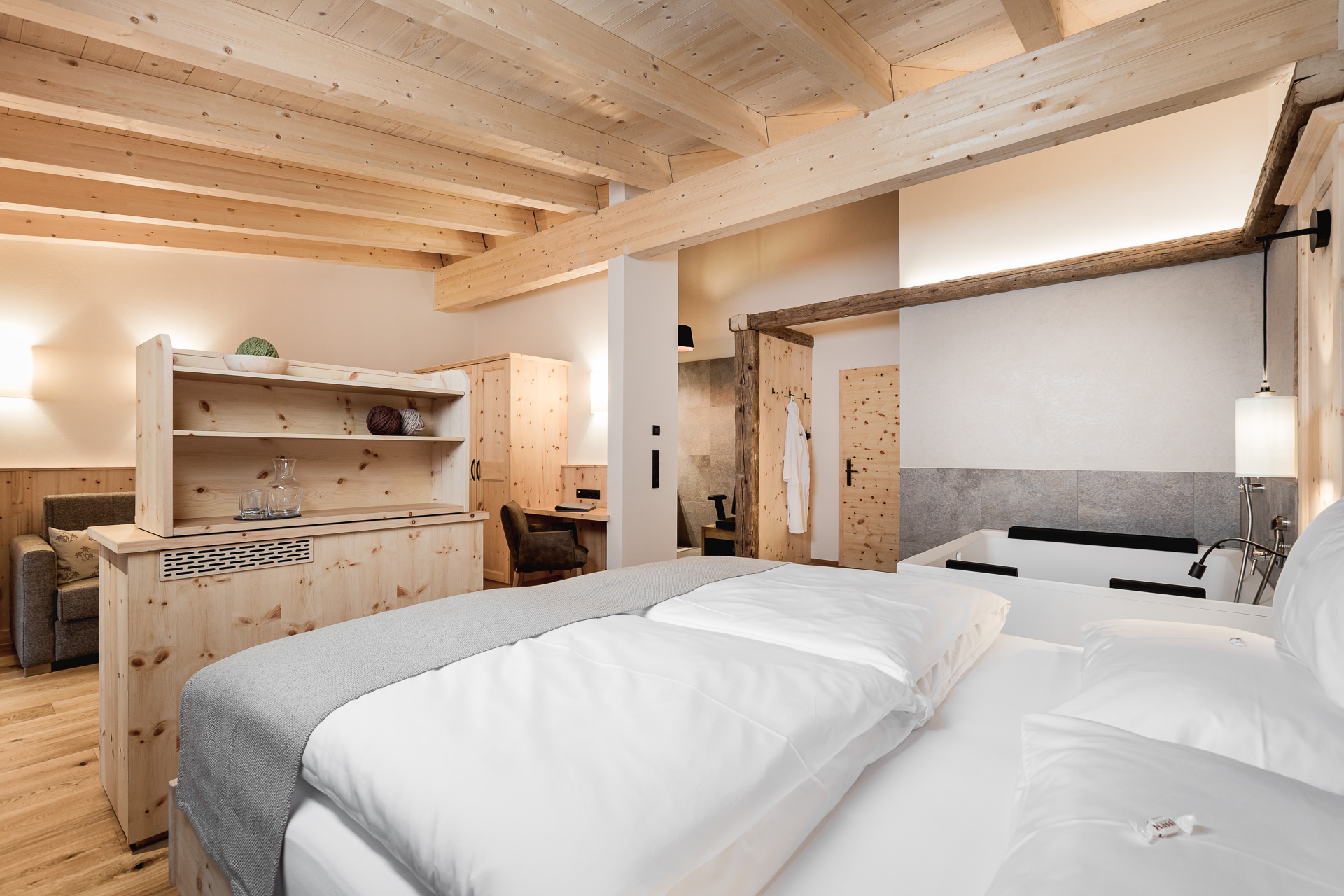 In unseren zeitgemäß eingerichteten Zimmern mit jeglichem modernen Komfort befinden Sie sich übrigens auch in adeliger Gesellschaft: Die Königin der Alpen, die Zirbe, sorgt mit ihrem duftenden Holz für pure Entspannung und einen gesunden Schlaf.