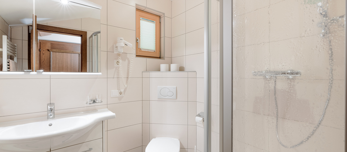 - Bathroom with bathtub and shower, hairdryer and toilet