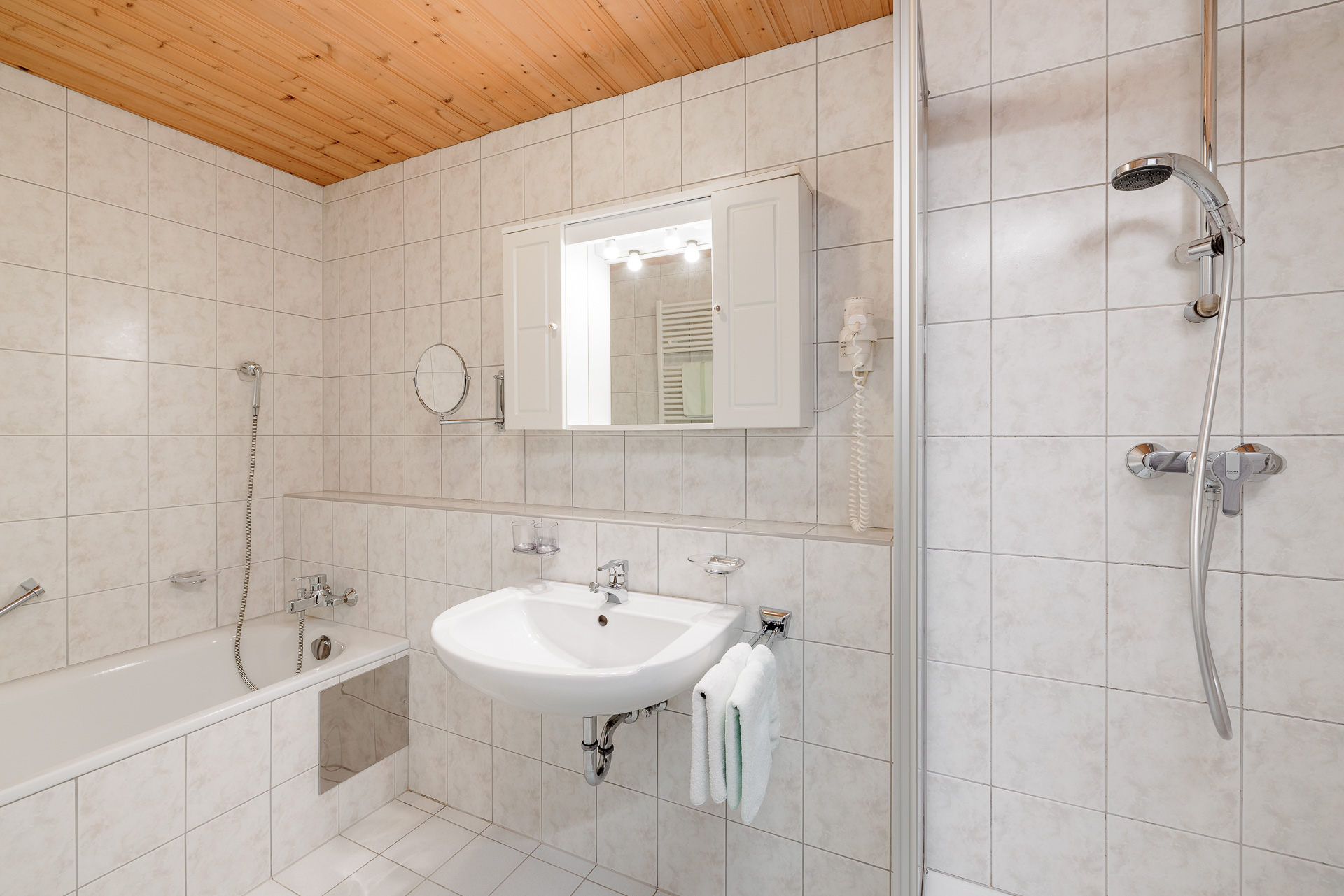 - 1 Schlafzimmer (mit Bad und Dusche, Föhn, WC separat)