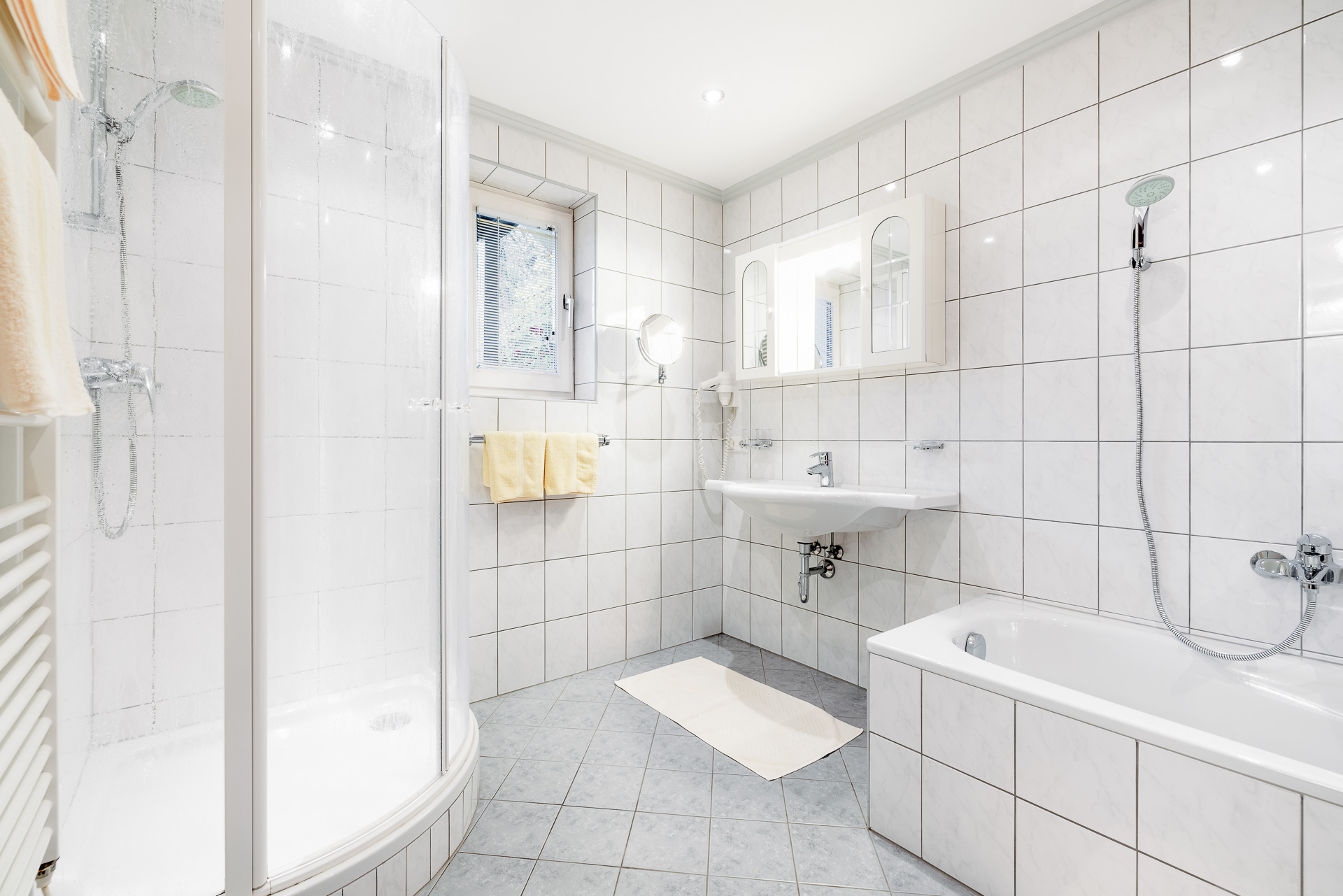 - 1 chambre à coucher (avec salle de bain avec baignoire et douche, sèche-cheveux, WC séparés, téléphone avec réveil, coffre-fort)