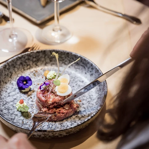 Auf unserer Speisekarte finden sich verschiedenste Gerichte, vom Filet bis hin zu Innereien: Gerichte, welche die Tiroler Traditionsküche nicht in Vergessenheit geraten lassen und gleichzeitig ein „zero-waste-cooking“ garantieren. Nur noch selten zubereitete Spezialitäten, wie Schöpsernes, Kalbskopf oder Schweineleber sind unsere Kern-Kompetenz, wofür wir weit über das Ötztal hinaus bekannt sind.