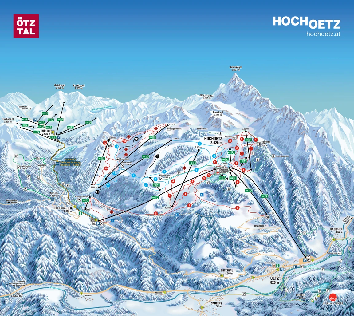 6 Skigebiete: Hochoetz-Kühtai, Sölden, Obergurgl-Hochgurgl, Niederthai, Gries, Vent